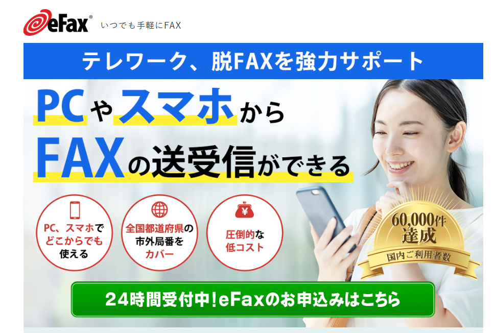そんな声から選ばれているのが インターネットファックス【eFax】 です。